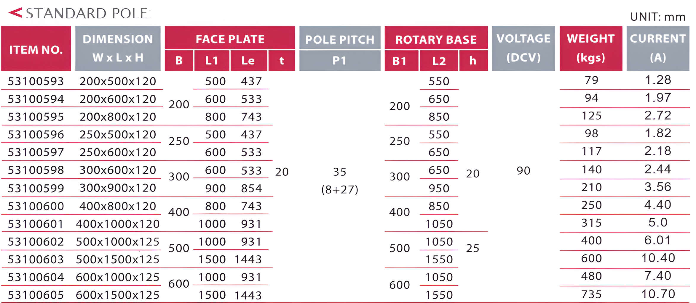 Bàn Từ Điện Hình Chữ Nhật-Cực Từ Dọc - Rectangular Electron-Magnetic Chucks-Longitudial Pole Spacing