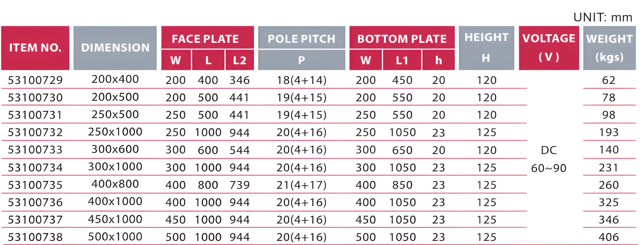 Bàn Từ Điện Chữ Nhật Công Suất Mạnh - Rectangular Electro Magnetic Chucks-With Increased Magnetic Power For Heavy Machining