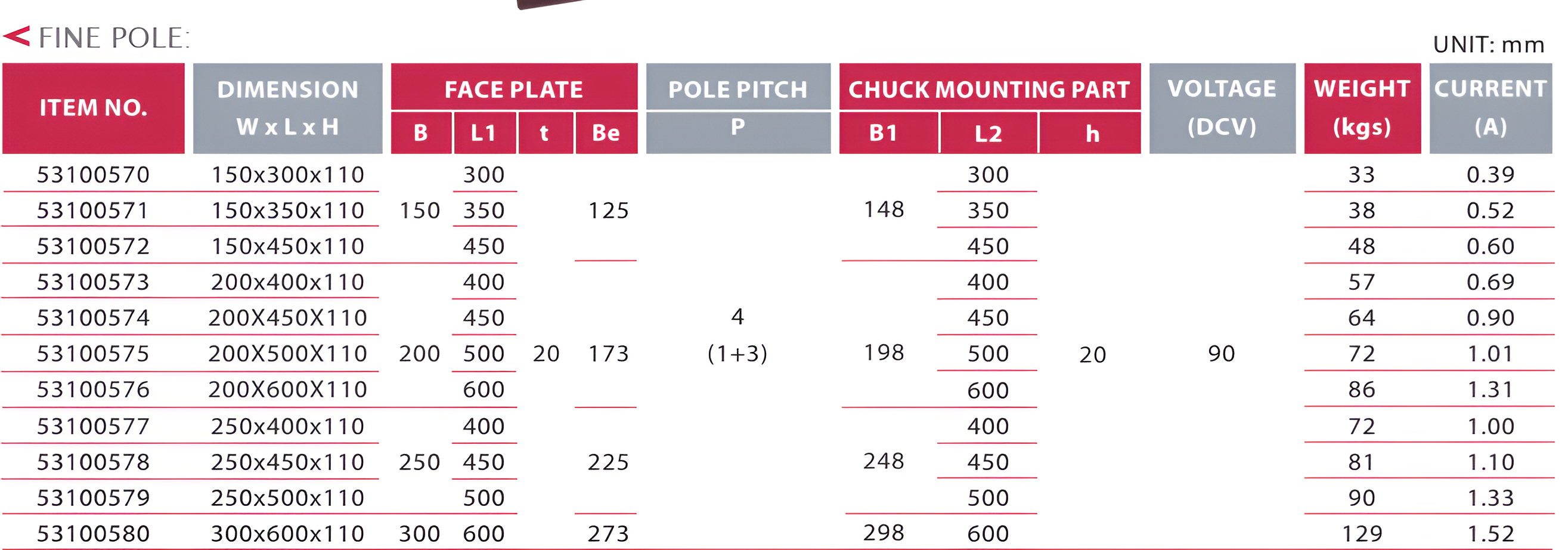 BÀN TỪ ĐIỆN HÌNH CHỮ NHẬT-CỰC DỌC - RECTANGULAR ELECTRON-MAGNETIC CHUCKS-LONGITUDIAL POLE SPACING
