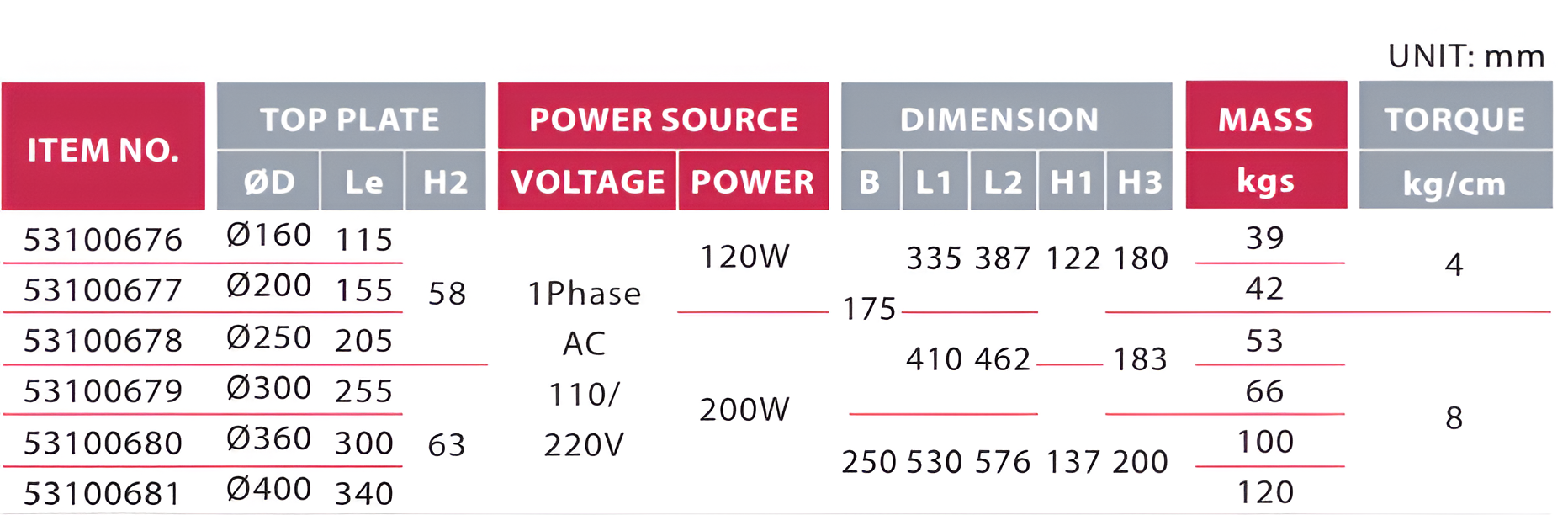 - Có nhiều đường kính mặt bàn từ Ø160 đến Ø400 mm, đáp ứng đa dạng nhu cầu gia công.