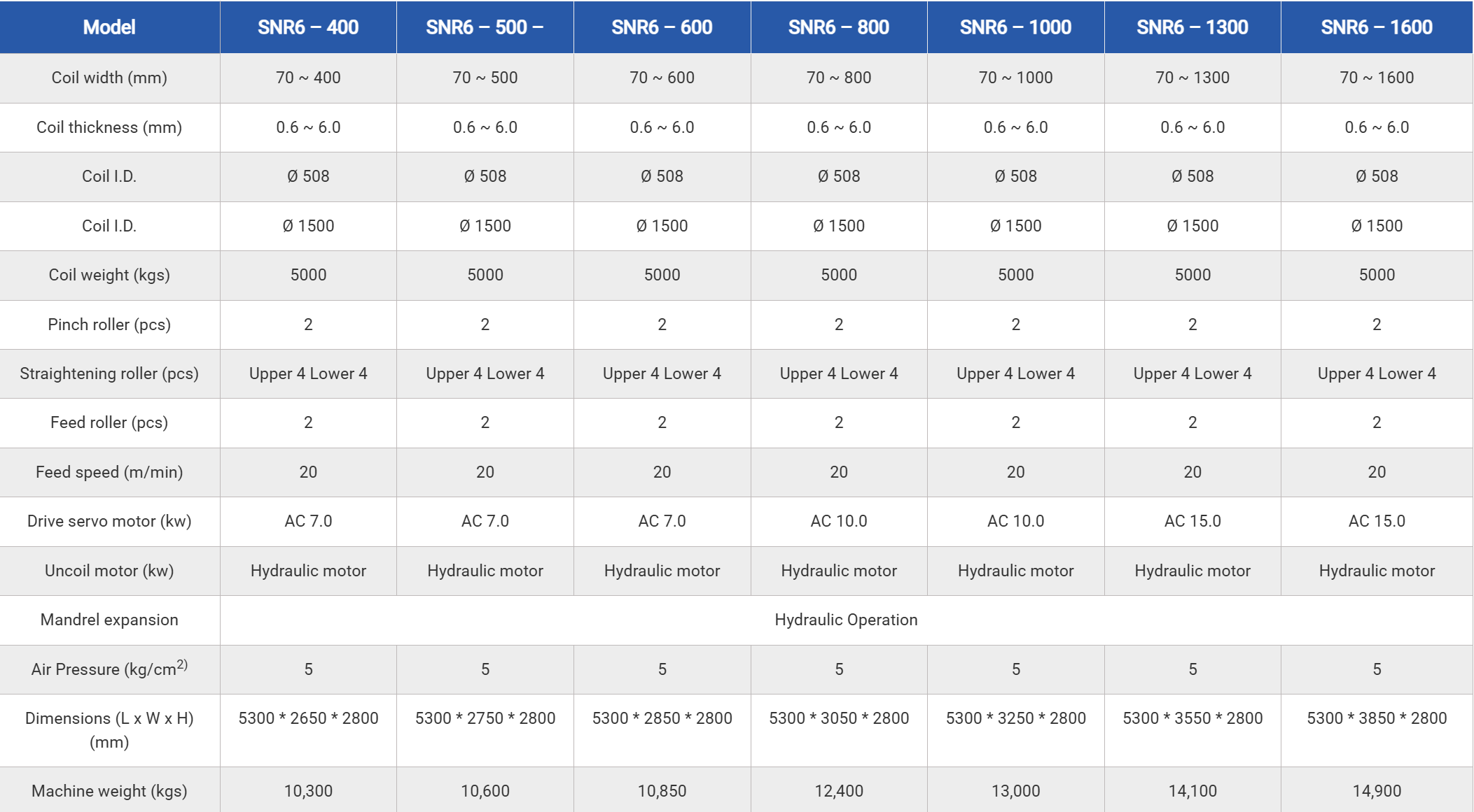 SNR 6/ SNR 8 Series là hệ thống cấp liệu tự động tích hợp xả cuộn – nắn thẳng – cấp phôi servo trong một thiết bị đồng bộ, được thiết kế cho các dây chuyền dập kim loại tải nặng, khổ rộng và yêu cầu độ chính xác cao. Dòng máy phù hợp với các nhà máy sản xuất công nghiệp quy mô lớn, vận hành liên tục và mức độ tự động hóa cao.