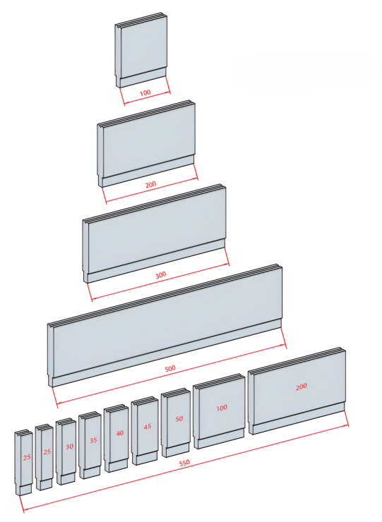 - Tổng chiều dài ghép lên đến 550 mm