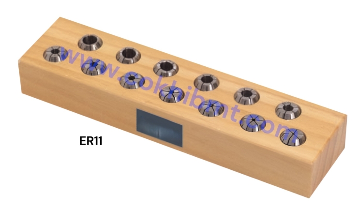 - Bộ Collet ER11: Dải kích thước từ 1-7mm, phổ biến trong các gia công CNC vừa và nhỏ.