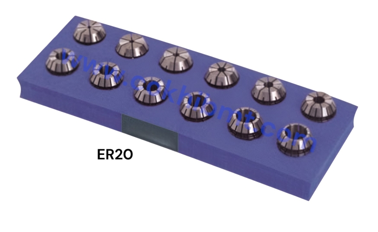 - Bộ Collet ER20: Dải kích thước từ 2-13mm, đáp ứng tốt các nhu cầu gia công phổ thông đến trung bình.