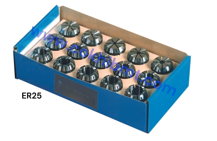 - Bộ Collet ER25: Dải kích thước từ 2-16mm, thích hợp cho gia công có đường kính lớn, yêu cầu kẹp chắc.