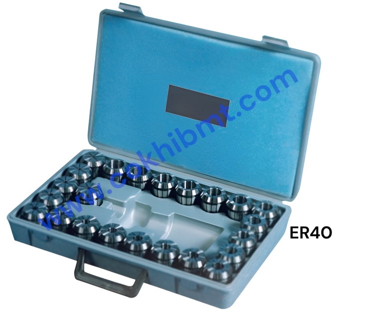 - Bộ Collet ER40: Dải kích thước từ 4-26mm, dùng cho máy công suất lớn, dao đường kính lớn.