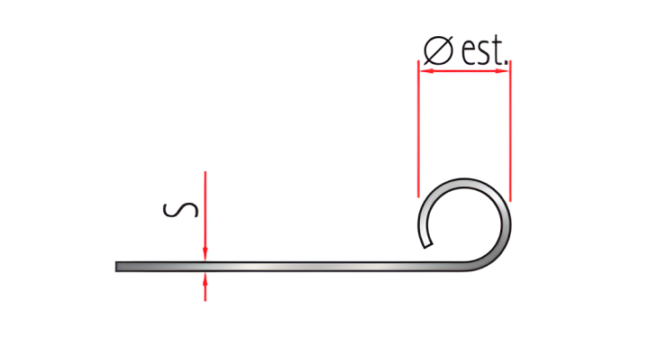 Bộ dao cối hoạt động theo nguyên lý uốn – cuốn liên tục, trong đó biên dạng dao và cối được gia công chính xác theo đường kính cuốn ước tính (Ø est.), tương ứng với: