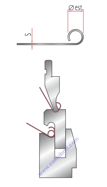 Trong quá trình chấn, mép vật liệu được dẫn hướng và cuốn dần quanh bán kính cối, tạo thành mép bo tròn khép kín hoặc bán khép kín, không làm gãy sợi kim loại và hạn chế nứt mép.