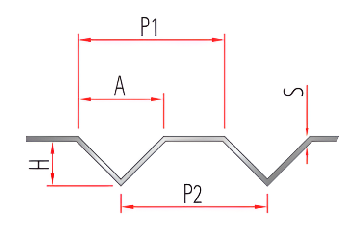 - P1, P2: Khoảng cách giữa các nếp gấp
