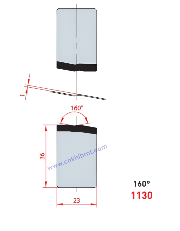 Bộ dao ép 160° là dòng dao chấn tạo bậc chuyên dụng cho máy chấn tôn, được thiết kế để tạo độ lệch bậc giữa các mặt phẳng kim loại tấm với độ chính xác cao và độ lặp ổn định.