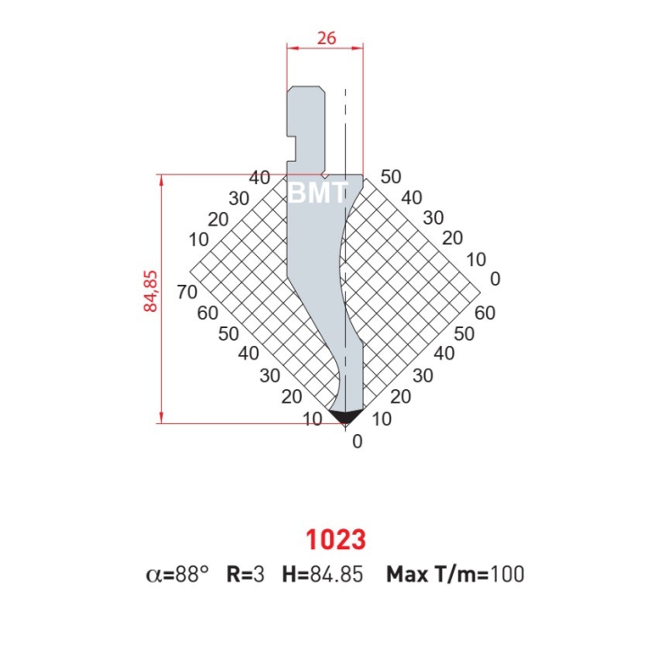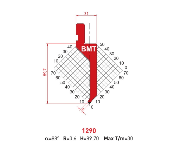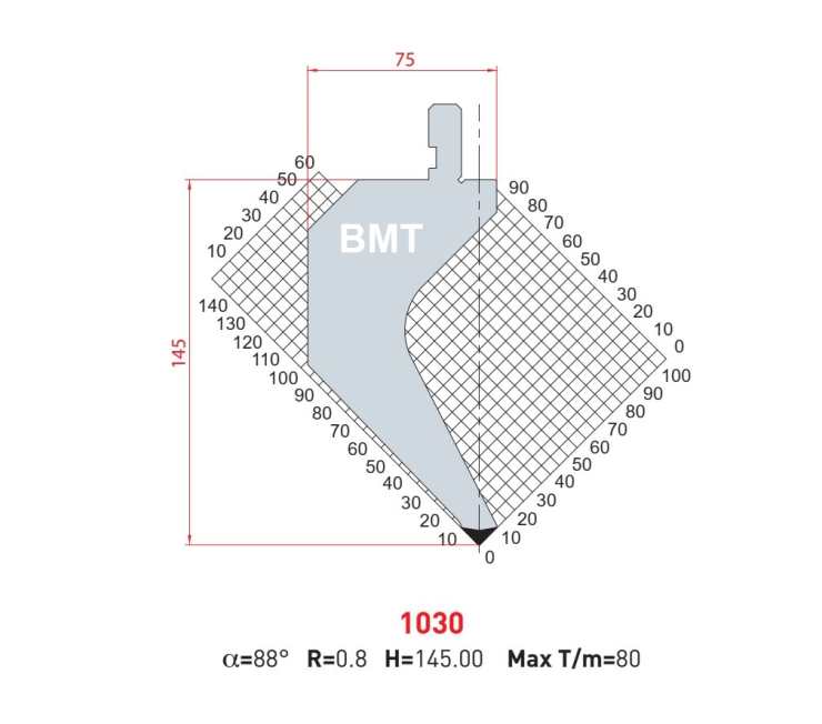 • Vật liệu chế tạo: Dao chấn AMADA thường được làm từ thép hợp kim chất lượng cao như 42CrMo, có khả năng chống mài mòn tốt.