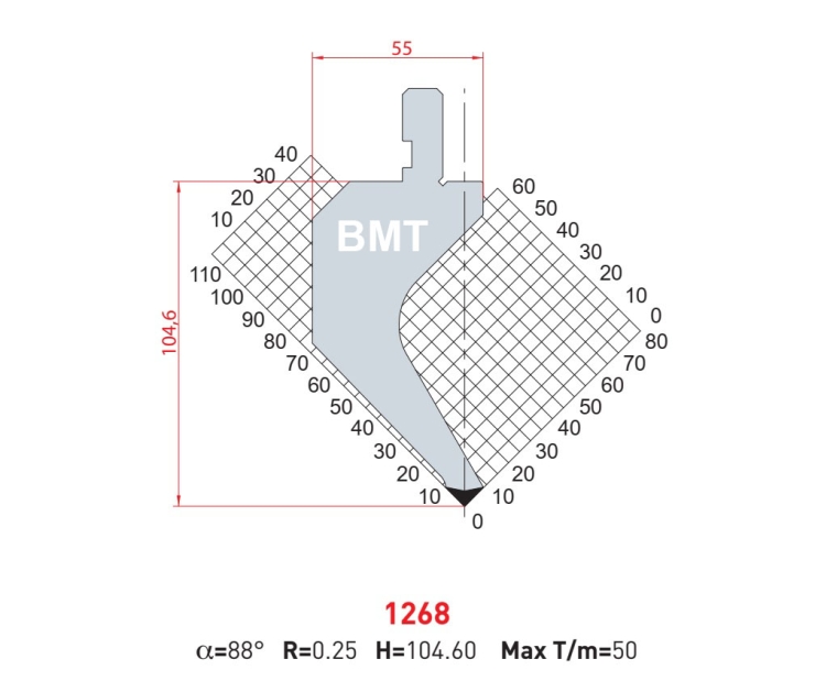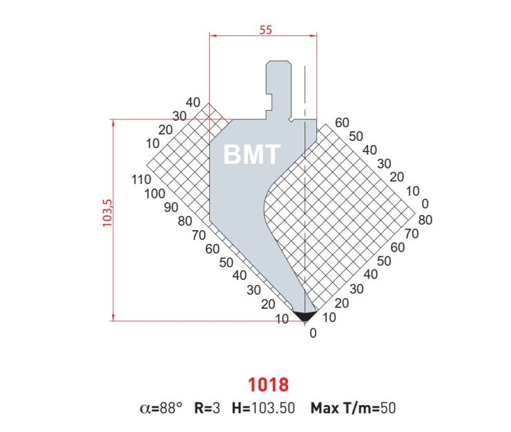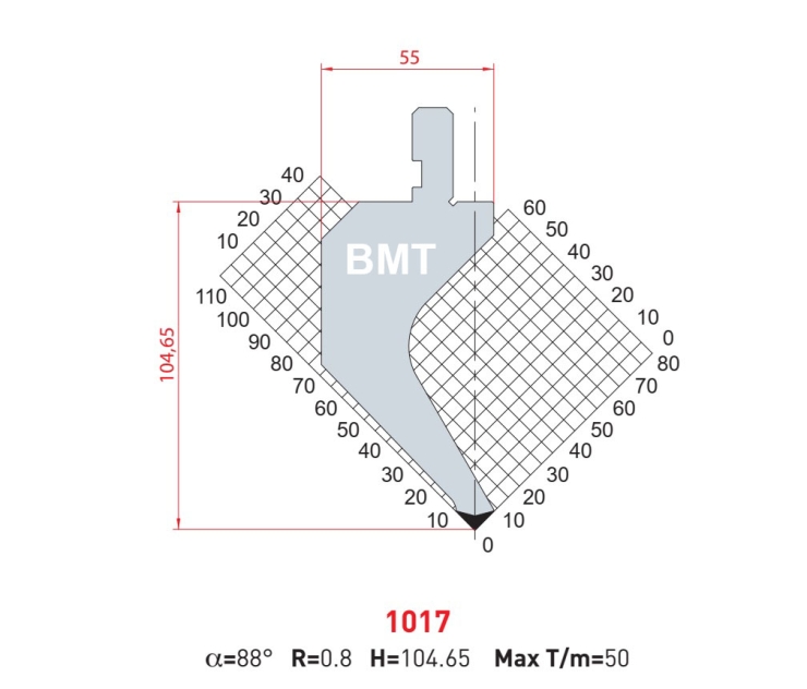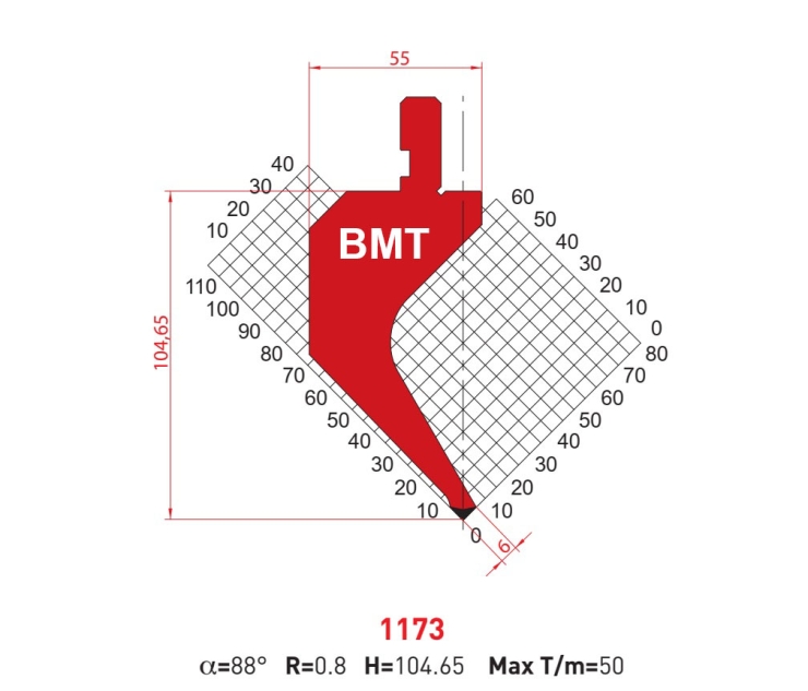 • Vật liệu chế tạo: Dao chấn AMADA thường được làm từ thép hợp kim chất lượng cao như 42CrMo, có khả năng chống mài mòn tốt.
