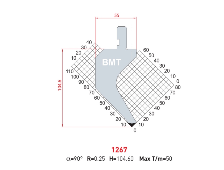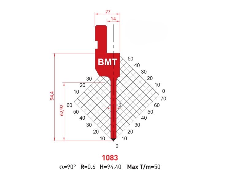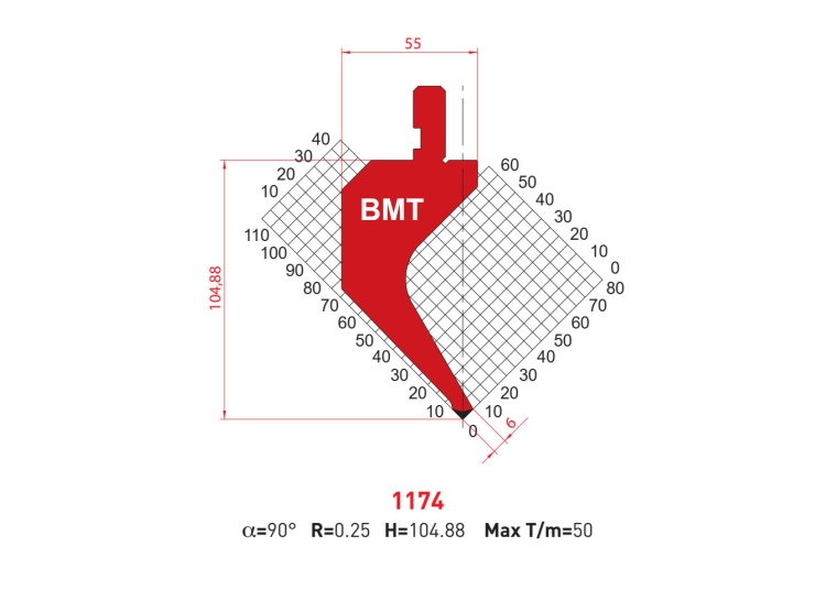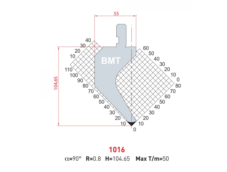 • Vật liệu chế tạo: Dao chấn AMADA thường được làm từ thép hợp kim chất lượng cao như 42CrMo, có khả năng chống mài mòn tốt.