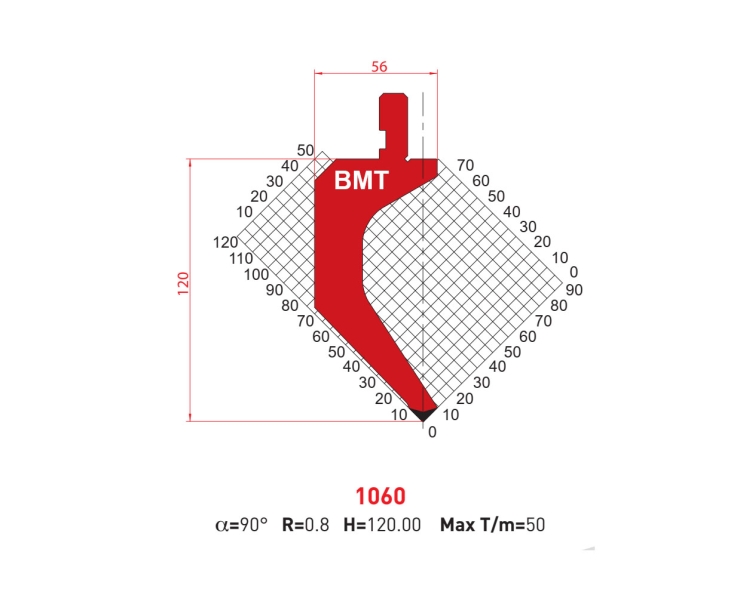 • Vật liệu chế tạo: Dao chấn AMADA thường được làm từ thép hợp kim chất lượng cao như 42CrMo, có khả năng chống mài mòn tốt.