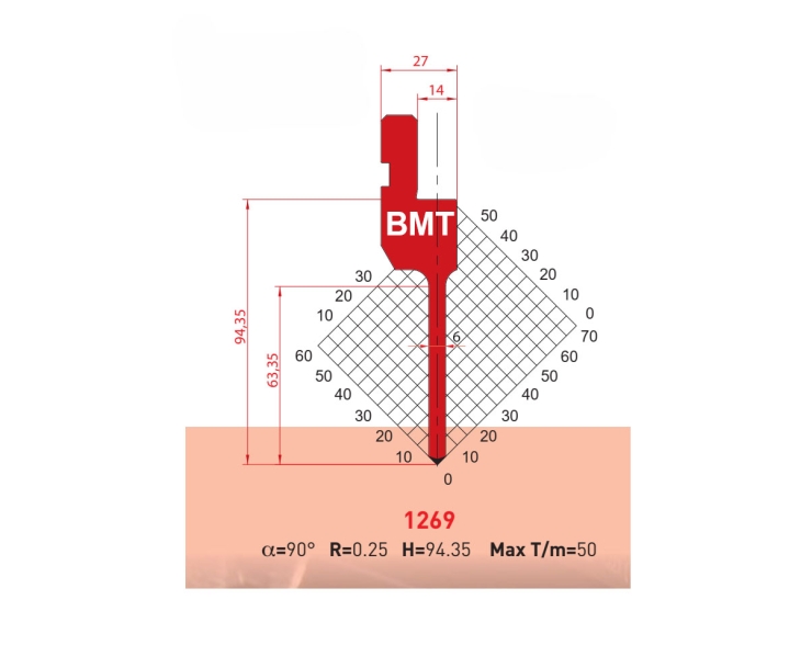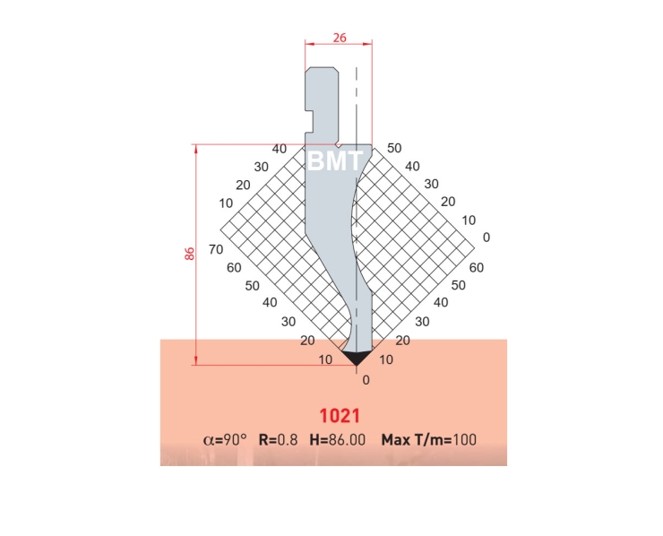 • Vật liệu chế tạo: Dao chấn AMADA thường được làm từ thép hợp kim chất lượng cao như 42CrMo, có khả năng chống mài mòn tốt.