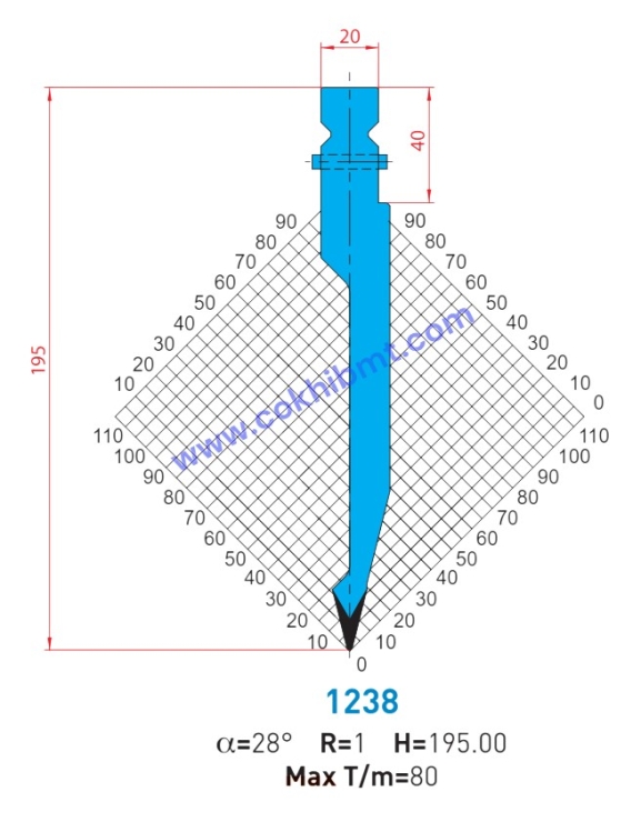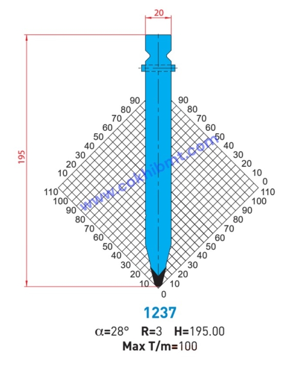 Dao chấn Wila 1237 và 1238 thuộc dòng dao góc nhỏ α = 28°, chuyên dùng để chấn các chi tiết có góc hẹp, chiều sâu lớn và yêu cầu độ sắc nét cao.