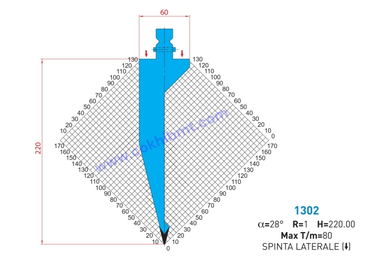 Dao chấn Wila 1295-1302 là dòng dao chấn góc nhỏ α = 28°, được thiết kế chuyên dụng cho các ứng dụng chấn tôn dày, chấn góc nhọn, tạo biên dạng sâu và các chi tiết yêu cầu lực ép cao.