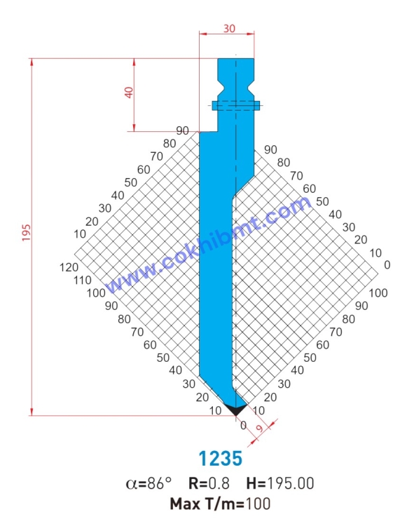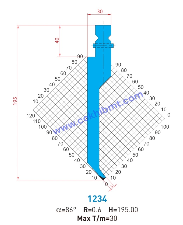 Với thiết kế góc chấn 86° và chiều cao 195mm và bán kính R tối ưu, các mã dao chấn này phù hợp để tạo cạnh gấp sắc nét trong đa dạng ứng dụng sản xuất công nghiệp.