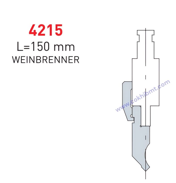 Đầu gá dao chấn 4215 – L=150 mm (WEINBRENNER) là dòng đầu gá được thiết kế theo chuẩn kẹp của hệ máy Weinbrenner, nổi bật với phần đầu gá bản rộng và cấu trúc thân dài, chắc. Sản phẩm hướng đến sự ổn định khi chấn, độ bám dao tốt và khả năng làm việc bền bỉ trong môi trường sản xuất cơ khí liên tục.
