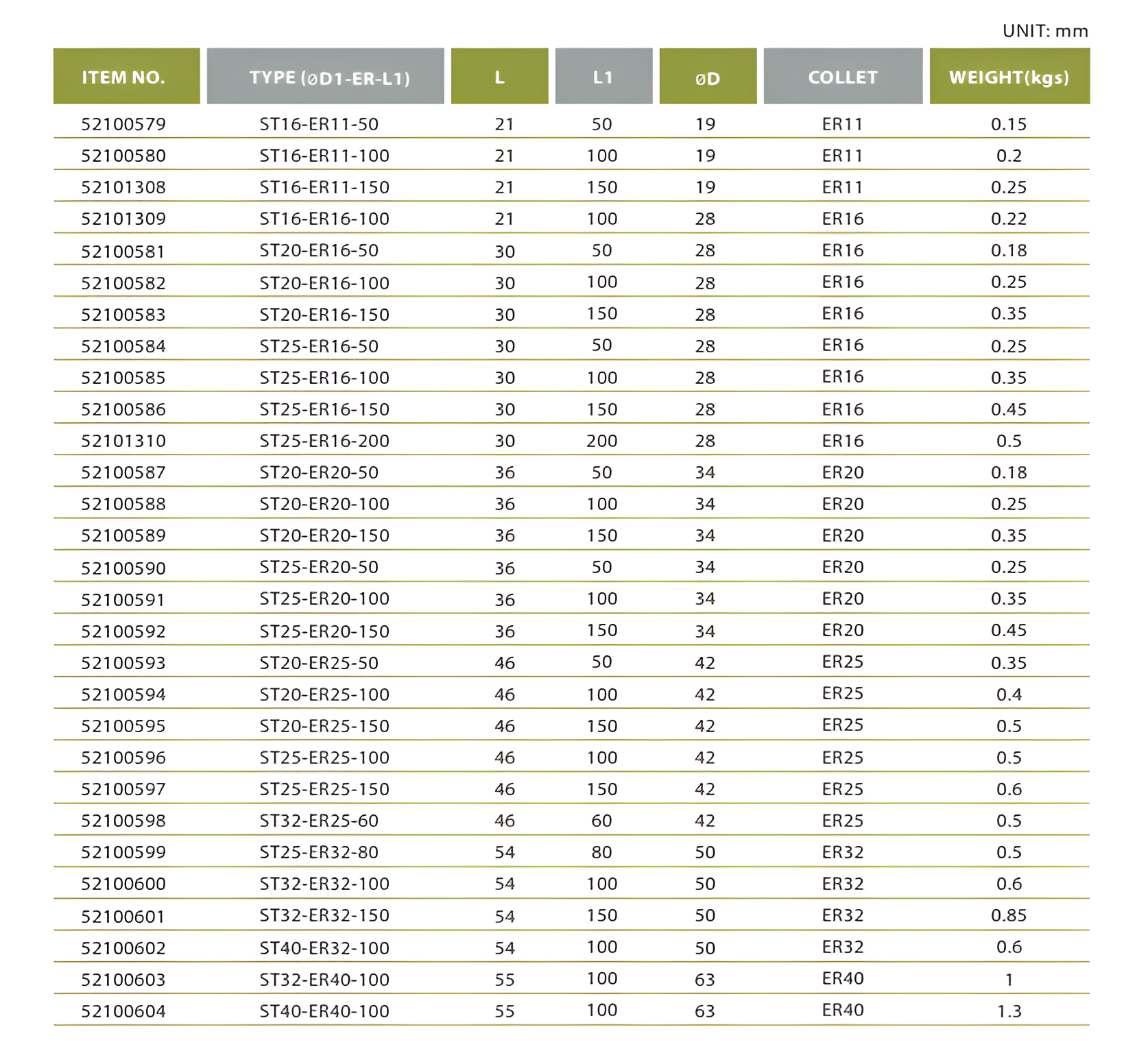 ST20 - ST25 - ST32 & ST42 Collets