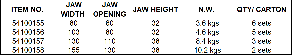 - Má kẹp lăng trụ (Prismatic Jaws) tôi cứng giúp kẹp chắc cả chi tiết tròn và chi tiết định hình, có khả năng chống mài mòn, đảm bảo độ bền và duy trì độ chính xác ổn định trong thời gian dài sử dụng.