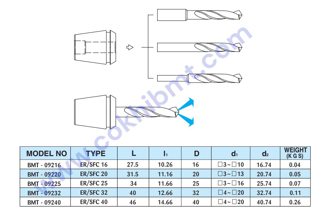- Sử dụng cho dao phay, dao khoan, dao hợp kim có cán trụ