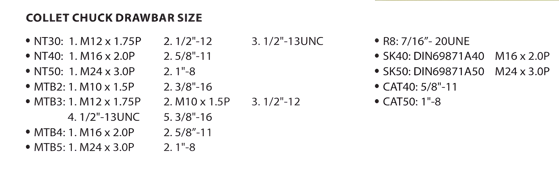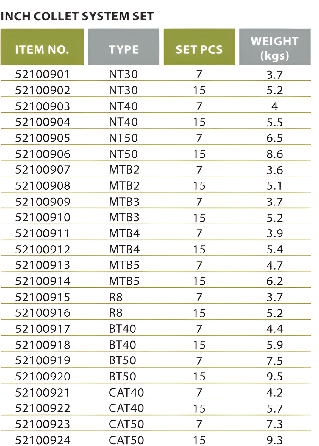 - Bộ collet theo hệ mét hoặc inch
