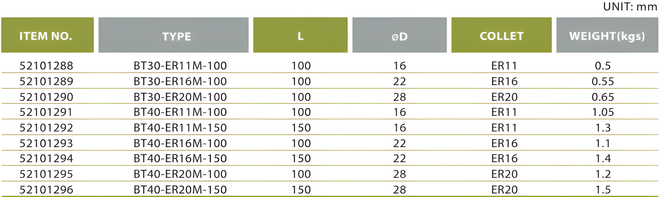 Hệ Thống Đầu Kẹp Collet ER/ST Chuôi Thẳng Kiểu M&UM - ST/ER Straight Shank Collet Chuck System M Type & UM Type