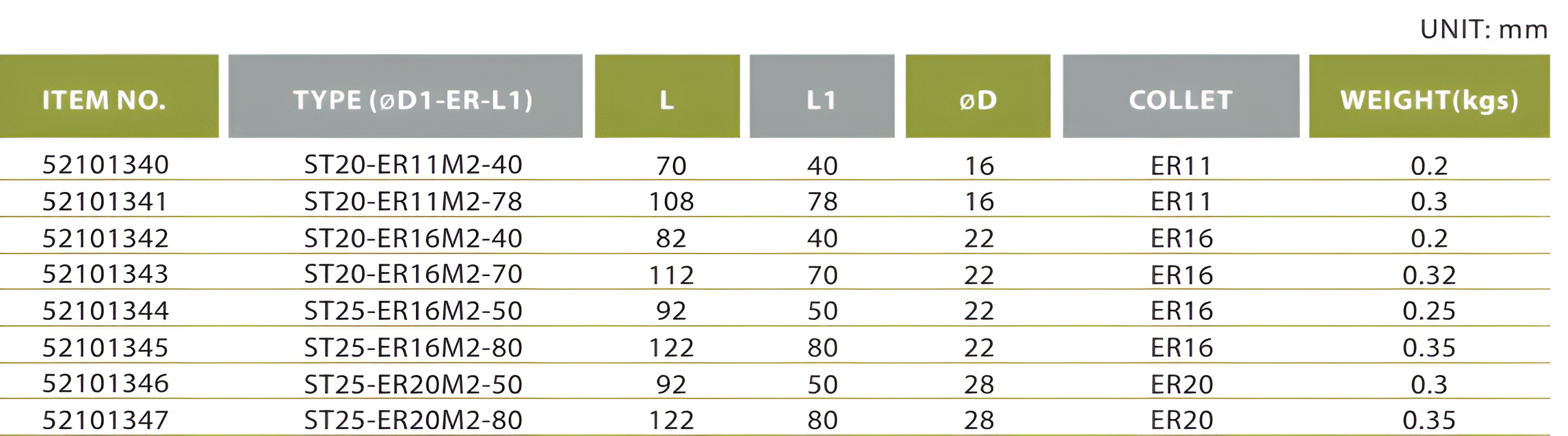 Hệ Thống Đầu Kẹp Collet ER/ST Chuôi Thẳng Kiểu M&UM - ST/ER Straight Shank Collet Chuck System M Type & UM Type