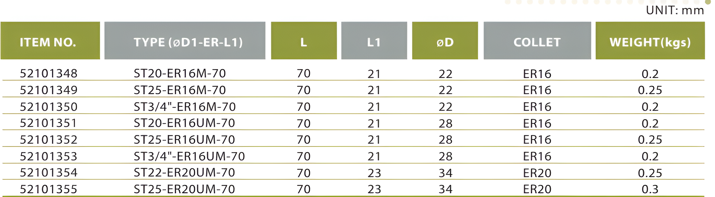 Hệ Thống Đầu Kẹp Collet ER/ST Mini Chuôi Thẳng - ST/ER Mini Straight Shank Collet Chuck System