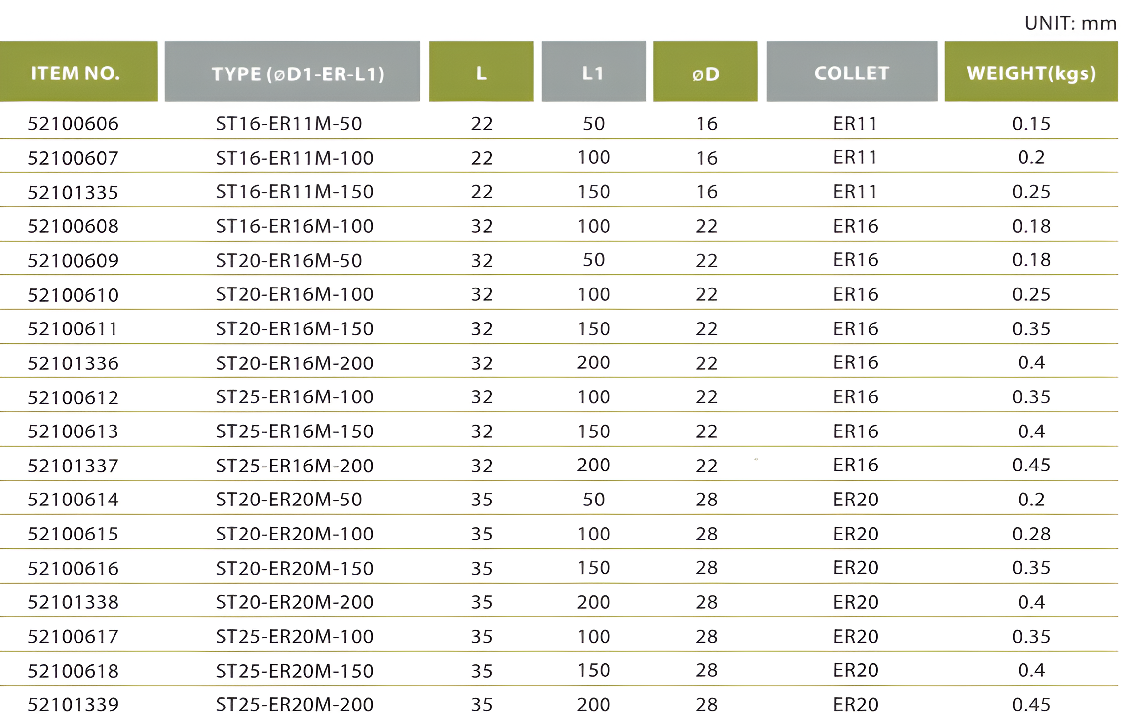 Hệ Thống Đầu Kẹp Collet ER/ST Chuôi Thẳng Kiểu M&UM - ST/ER Straight Shank Collet Chuck System M Type & UM Type