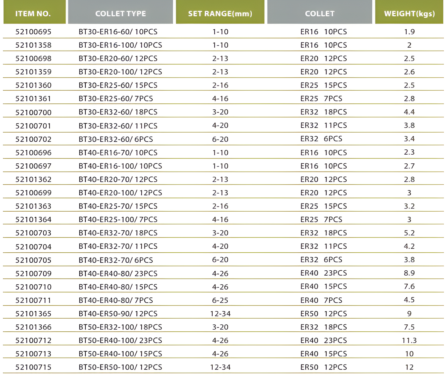 Hệ Thống Đầu Kẹp Collet CAT/ER - CAT/ER Collet Chuck System