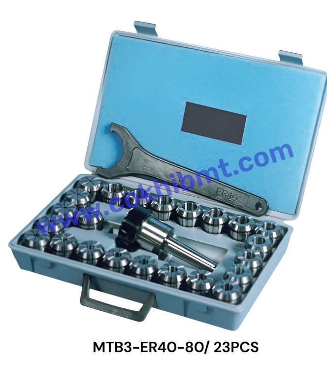 - Bộ sản phẩm được cấu hình sẵn gồm đầu kẹp MT và collet ER tương ứng, giúp đảm bảo tính đồng bộ giữa chuôi côn, collet và dụng cụ cắt.