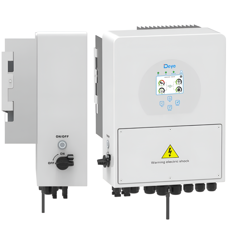 - Inverter Deye hybrid: Quản lý dòng điện linh hoạt giữa pin mặt trời – pin lưu trữ - điện lưới.
