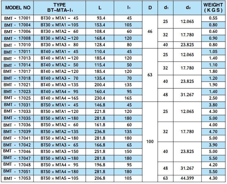 KẸP DAO PHAY MẶT - BT FACE MILL ARBOR E TYPE
