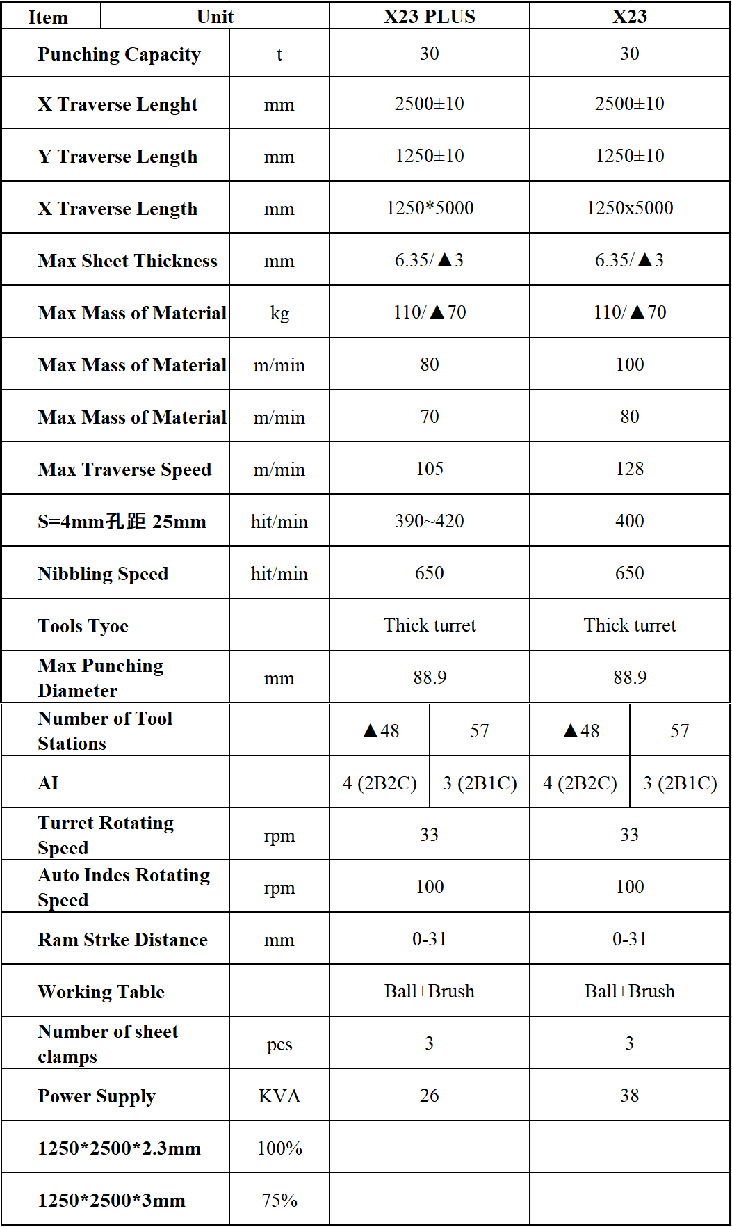 Máy đột servo thủy lực X23 sử dụng hệ thống servo thủy lực H + L HPPC-30T của Đức, cho công suất đột mạnh mẽ 30 tấn. Hệ thống được thiết kế đạt tốc độ đột lên tới 450 lần/phút, đáp ứng yêu cầu sản xuất hàng loạt, đồng thời duy trì độ chính xác cao và tiết kiệm năng lượng.