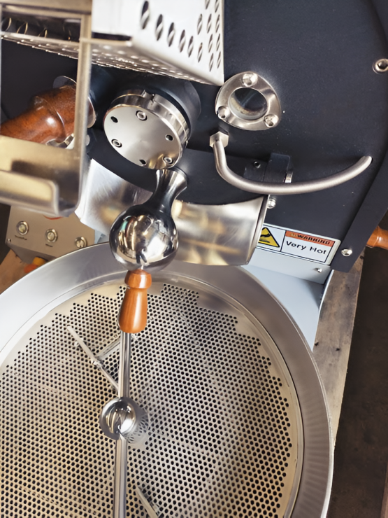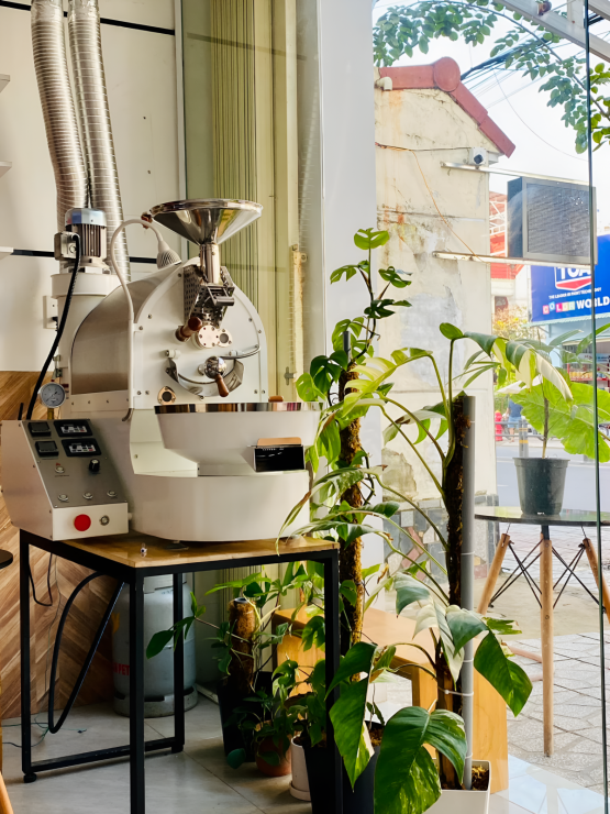 - Rang thử tại xưởng rang cà phê quy mô nhỏ.