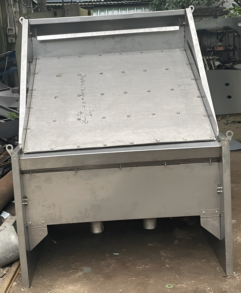 Sàn trượt được thiết kế với kích thước 1.6 x 1.2 m, đủ lớn để xử lý lưu lượng phân – nước thải cao trong các trang trại quy mô vừa và lớn. Toàn bộ sàn sử dụng inox SS304 dày, có khả năng chống gỉ và chống ăn mòn tốt trước axit hữu cơ, amoniac và độ ẩm cao – những yếu tố đặc trưng trong môi trường chăn nuôi.