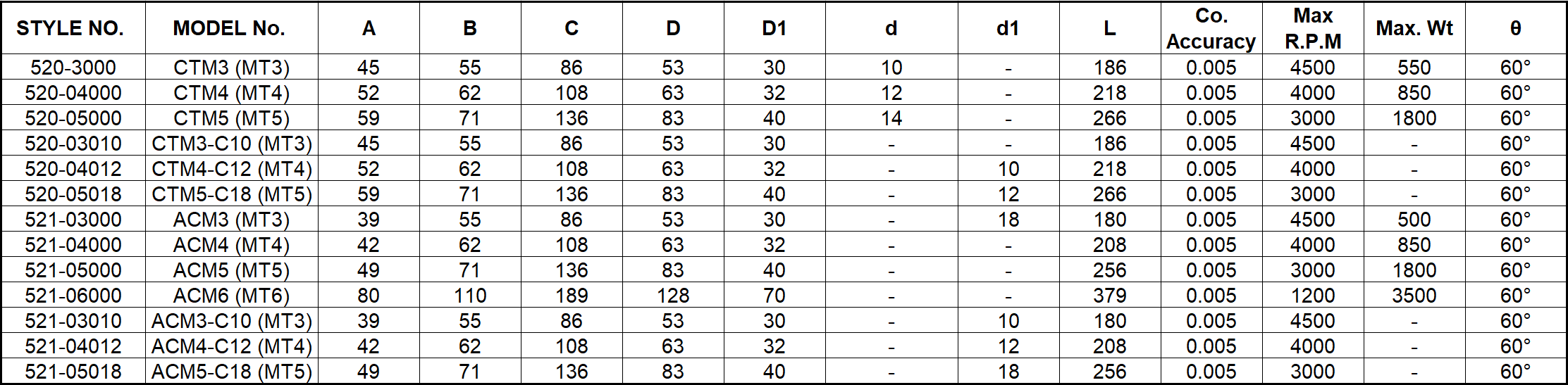 - Góc mũi 60° tiêu chuẩn, đa dạng chuẩn côn MT3, MT4, MT5, MT6 tốc độ quay tối đa lên đến 4500 vòng/ phút.